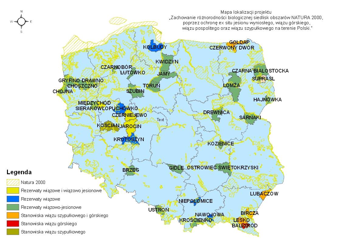 Niniejszy projekt ma na celu zachowanie różnorodności biologicznej siedlisk obszarów NATURA 2000, przez zachowanie ex situ zasobów genowych populacji i pojedynczych drzew jesionu wyniosłego i wiązów w postaci nasion i pędów. Istnieje przy tym konieczność zachowania dużej różnorodności genetycznej populacji osobników wybranych do zachowania ex situ,z uwagi na fakt, iż duża zmienność genetyczna może w przyszłości umożliwić adaptację populacji do zmiennych warunków środowiska. Do projektu wytypowano populacje i pojedyncze drzewa jesionu wyniosłego oraz wiązów z całego zasięgu występowania tych gatunków w Polsce za wyjątkiem Dolnego Śląska, które ujęte są w projekcie realizowanym w latach 2013-2016 "Zachowanie różnorodności biologicznej poprzez ochronę ex situ jesionu wyniosłego, wiązu górskiego oraz wiązu pospolitego na terenie Dolnego Śląska na obszarach NATURA 2000", dofinansowanego ze środków WFOŚiGW we Wrocławiu.