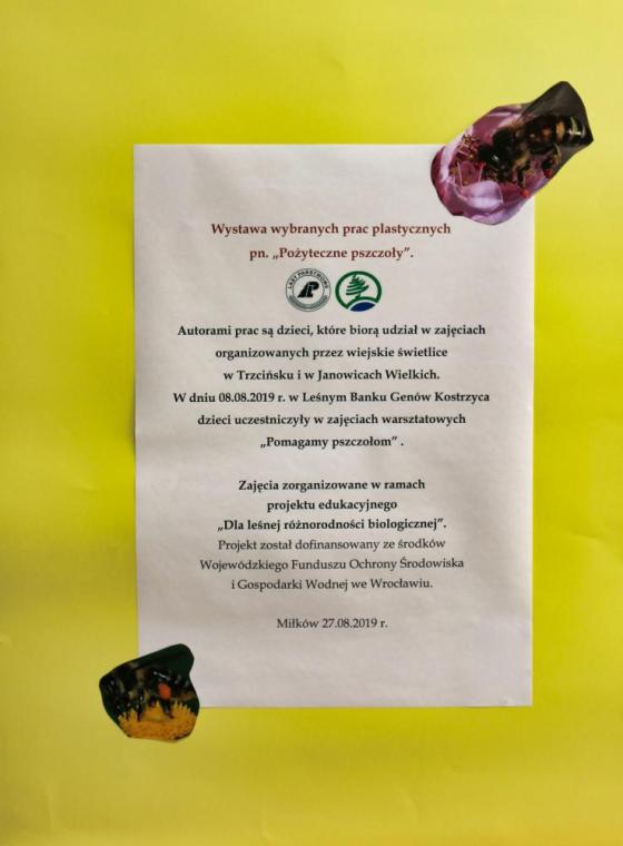 W dniu 8.08.2019 r. dzieci ze świetlicy z Trzcińska i Janowic Wielkich wykonały prace plastyczne podczas zajęć warsztatowych „Pomagamy pszczołom”.