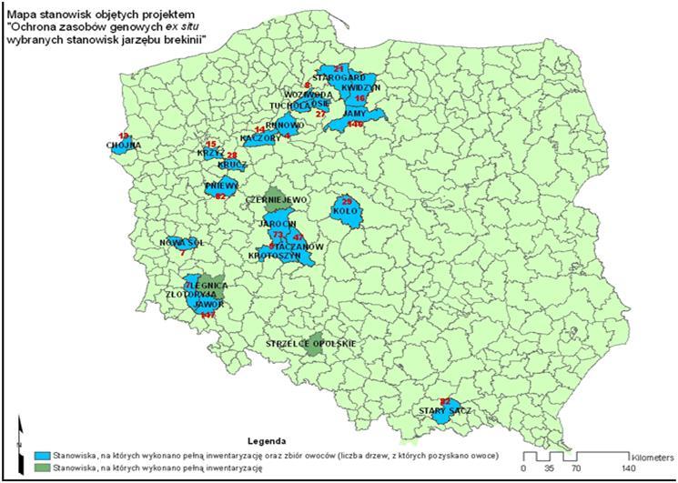 - Utworzenie kolekcji nasion reprezentującej wytypowane stanowiska jarzębu brekinii, przechowywanej w Leśnym Banku Genów Kostrzyca.